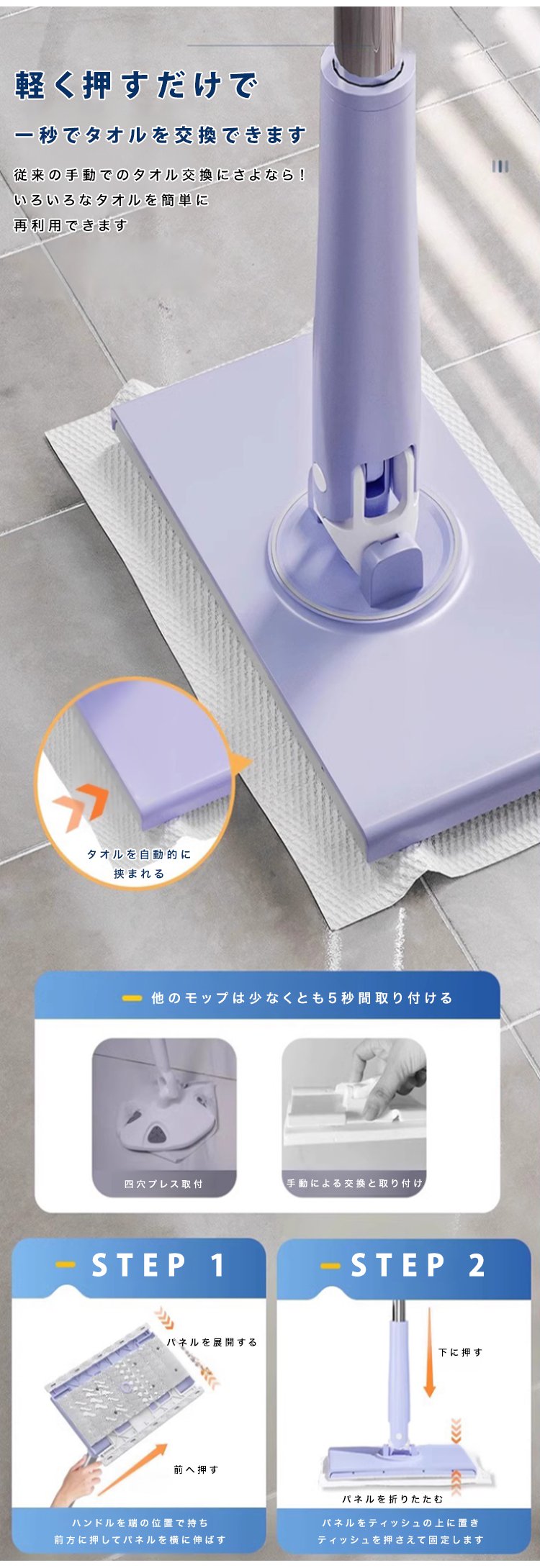 手洗い不要クレンジングタオルモップ