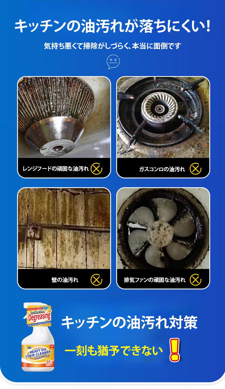 日常の油汚れを簡単に除去し、キッチンを新たに生まれ変わらせましょう!